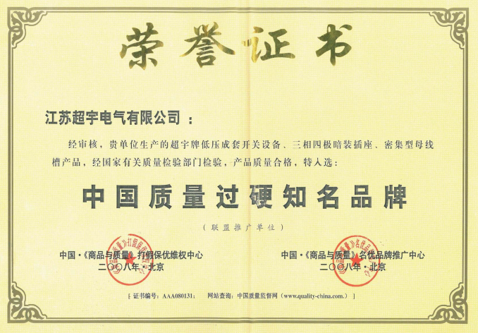 中國(guó)質(zhì)量過硬知名品牌榮譽(yù)證書